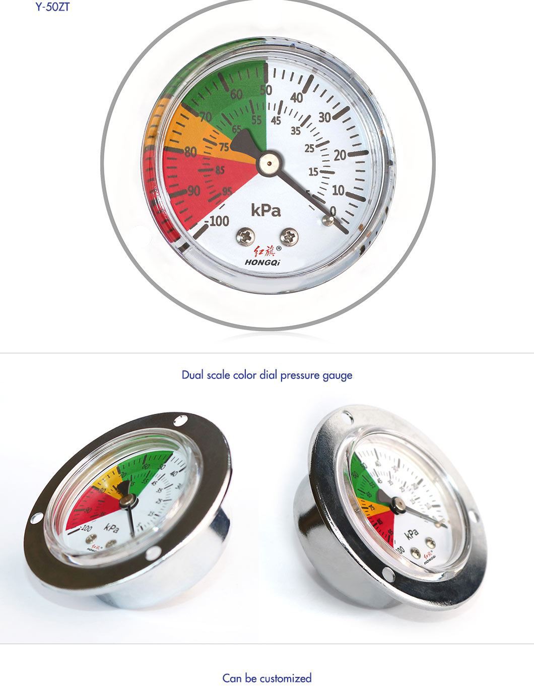 The pressure gauge can be applied for those gaseous, liquid or vaporous media which don' t explode, crystallize and freeze, and corrode stainless copper or copper alloy. It adopts helical case, standardized copper connector, broadened bourdon tube, stainless steel movement and strengthened link. In order to ensure accuracy class, advanced equipment and technique are used in the process of calibration and testing. It is characterized by good appearance, high precision, small distance after tapping, good repetition and long service life. Hongqi Instrument (Changxing) Co., Itd has put into operation. Thanks to efforts of 15 offices and more than 100 agents, our products are popular across the country, and are exported to over 10 Mid-East and Euro-American countries and regions. In 2000, we were recognized as enterprise name without administrative divisions by state administration for industry and commerce, and can do import and export business.